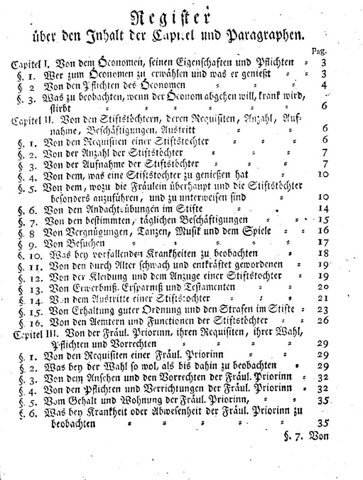 5) Capitel von den Stiftsfraeulein oder Pensionairinnen.